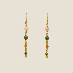 Coppia di orecchini in Agata corniola. Diaspro verde, Quarzo rosa