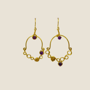 Coppia di orecchini in Apatite blu, Ametista e Ossidiana nera