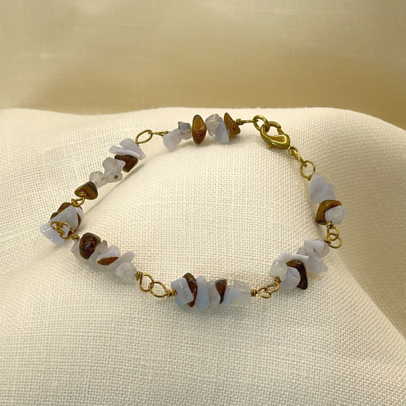Bracciale – Fritza I – in Calcedonio Azzurro e Occhio di tigre
