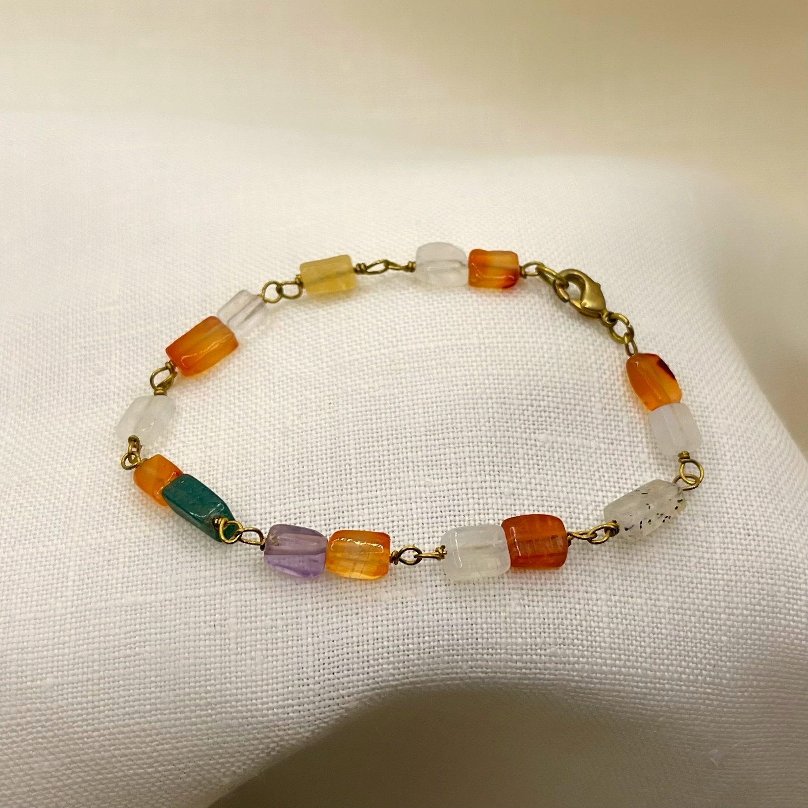 Bracciale – Il Bacio – in Ametista, Fuxite, Agata Corniola e Pietra di Luna