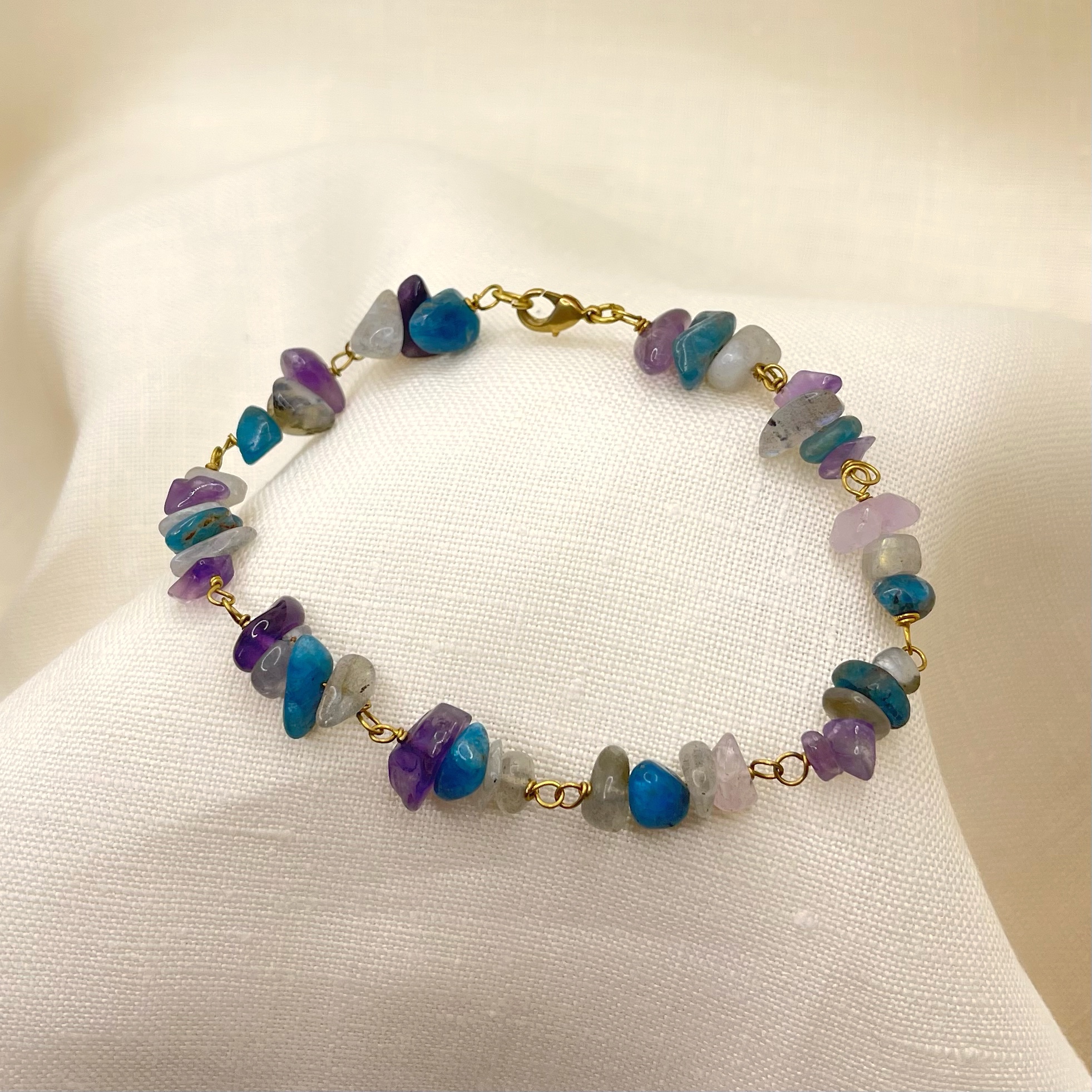 Bracciale – Le tre età III – in Apatite, Labradorite e Ametista