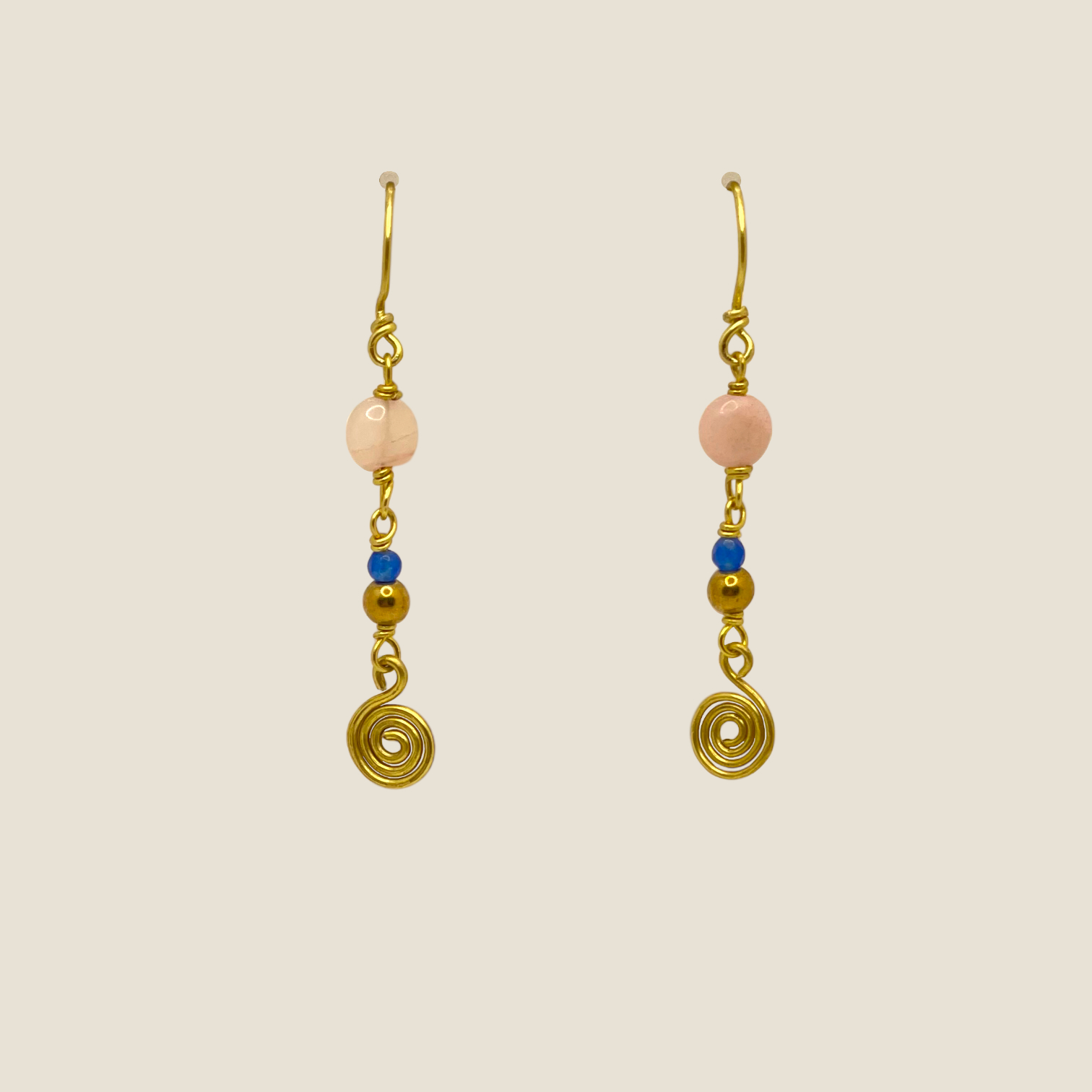 Coppia di orecchini in Agata blu e Quarzo rosa