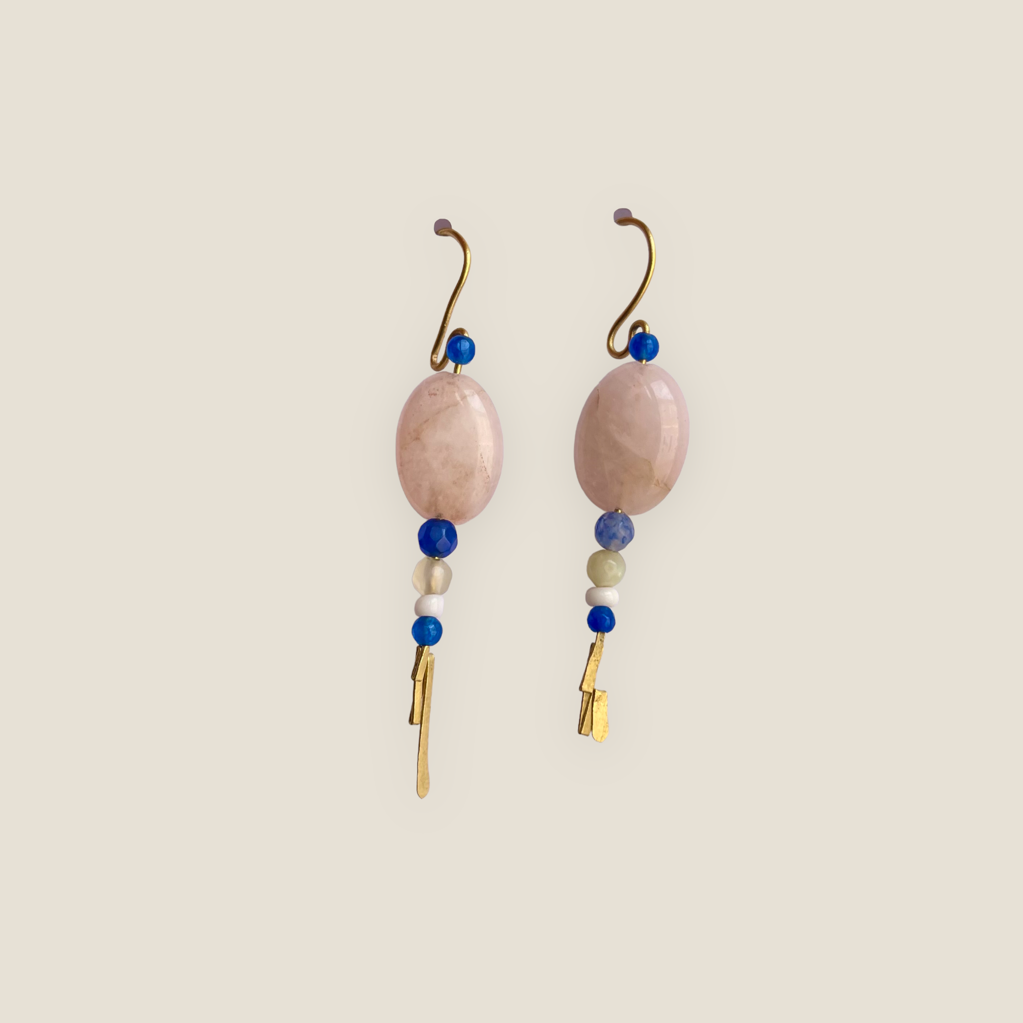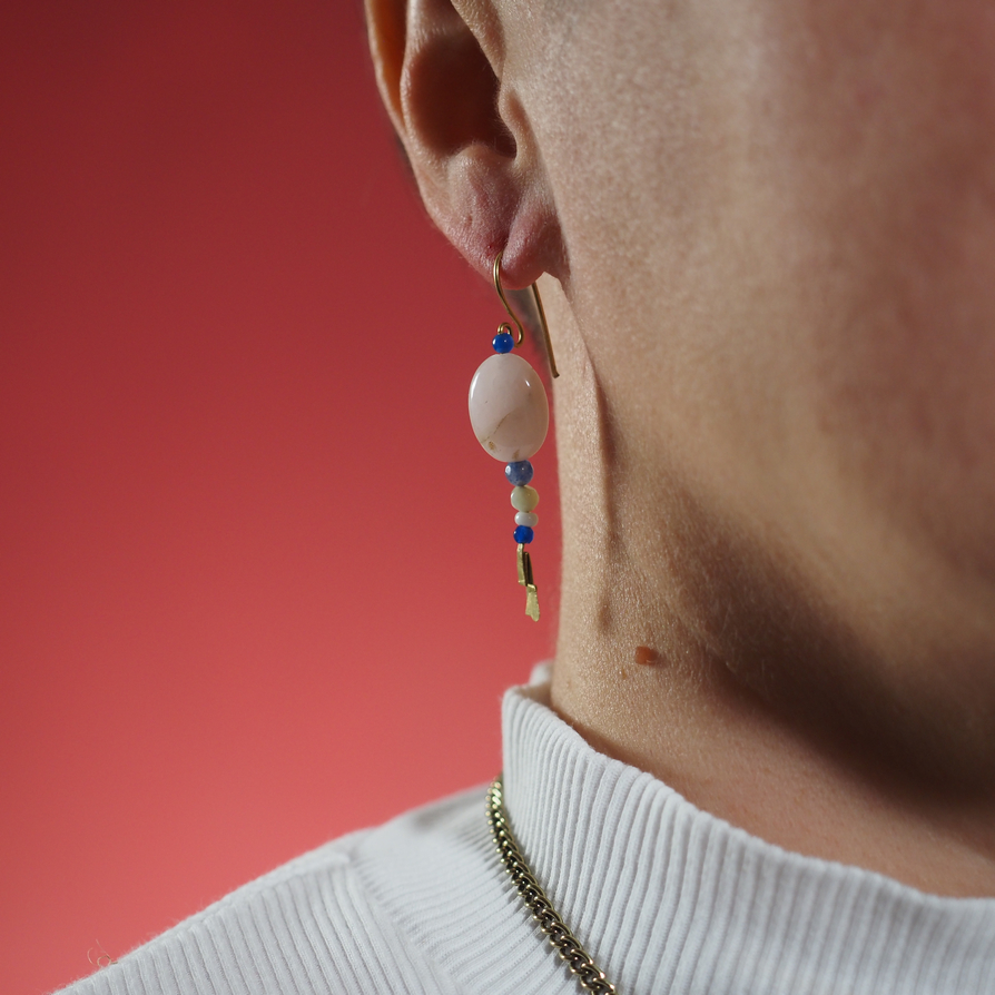 ESAURITO – Coppia di orecchini in agata blu, quarzo rosa, giada, agata bianca
