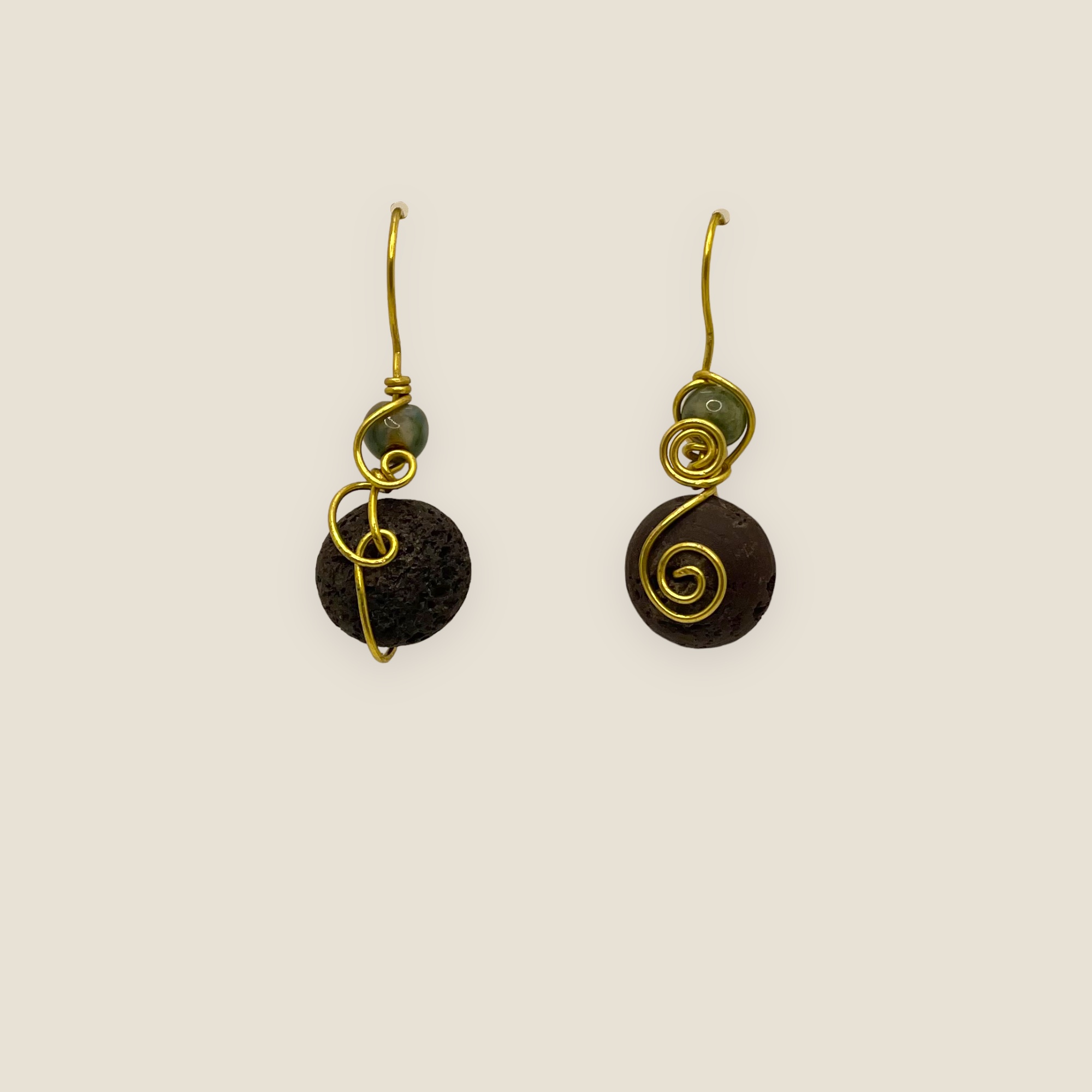 Coppia di orecchini in Agata muschiata e pietra lavica