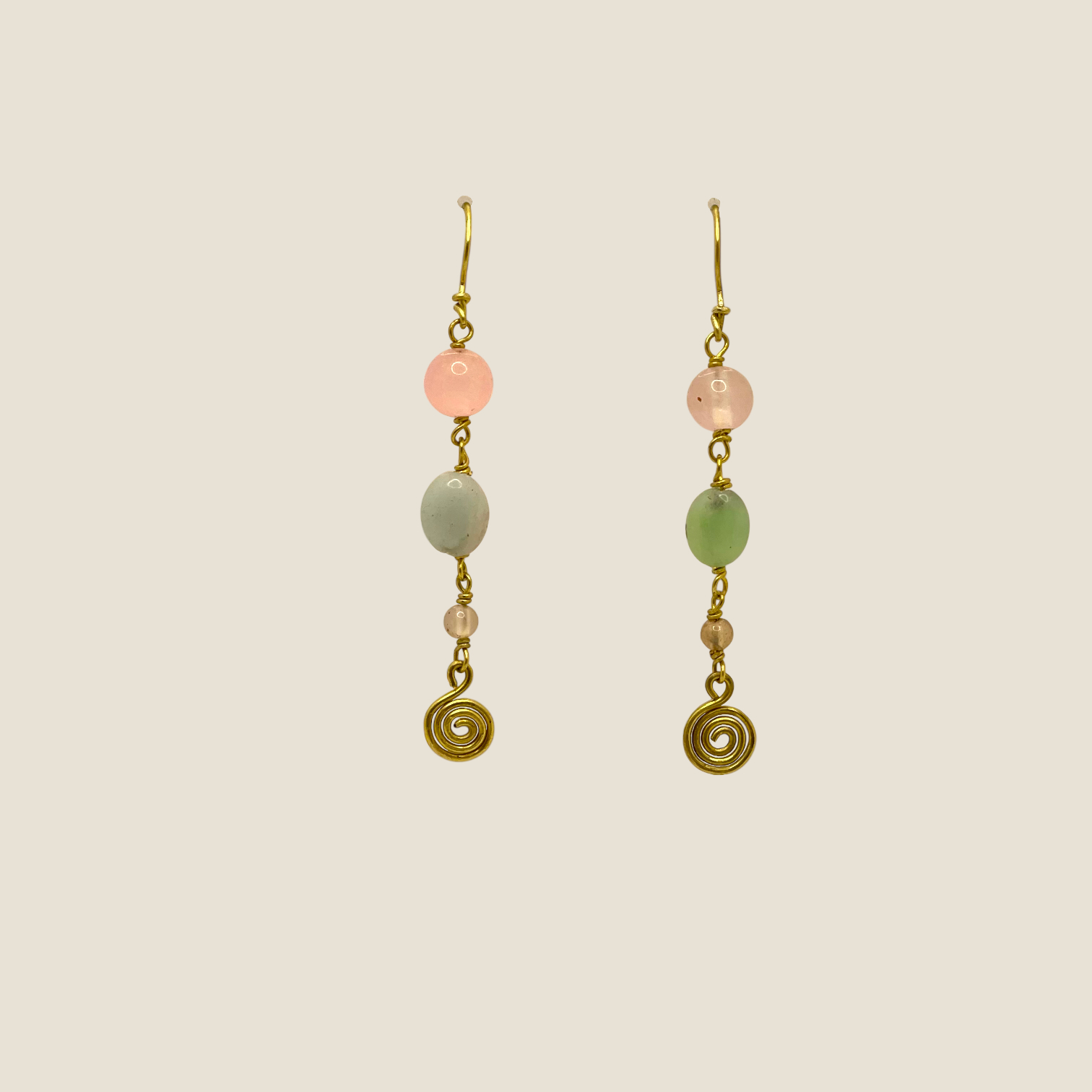 Coppia di orecchini in Amazzonite e Quarzo rosa