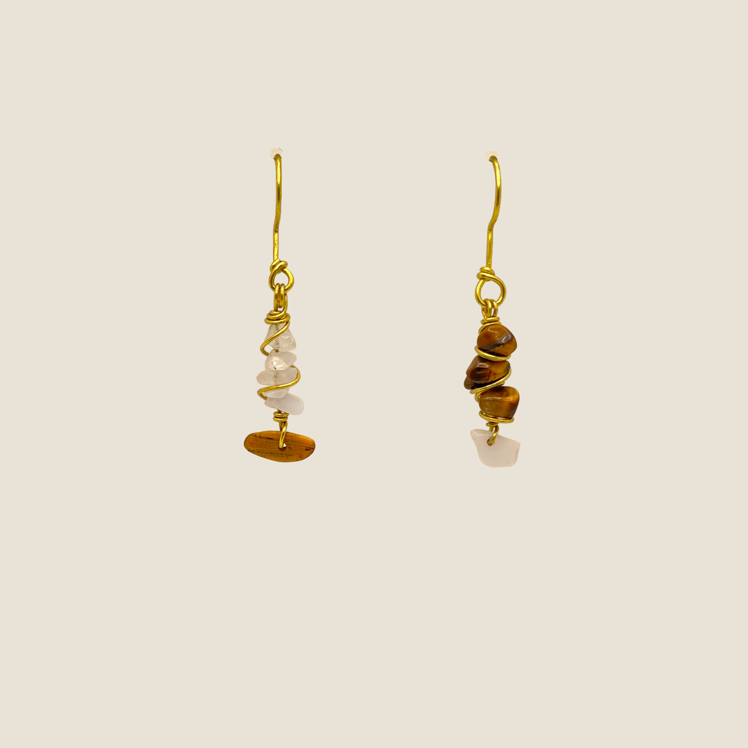 Coppia di orecchini in Occhio di Tigre e Calcedonio azzurro