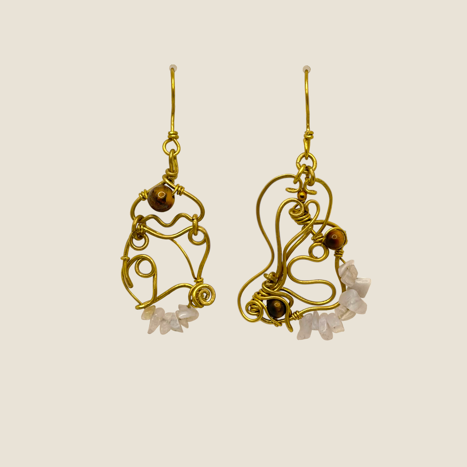 Coppia di orecchini in Occhio di Tigre e Calcedonio azzurro