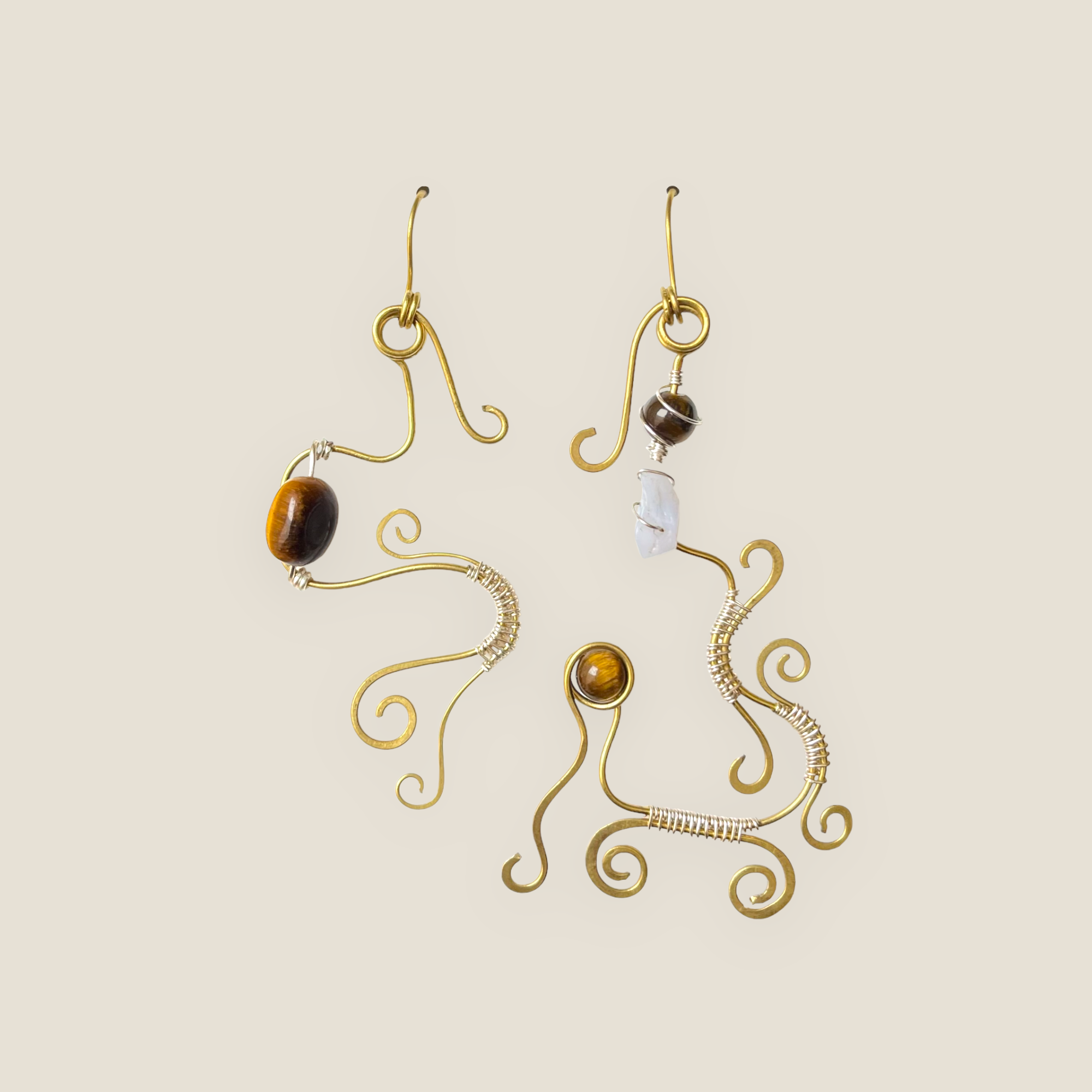 ESAURITO – Coppia di orecchini in occhio di tigre e calcedonio azzurro