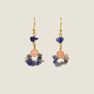 Coppia di orecchini in Quarzo rosa e Dumortierite