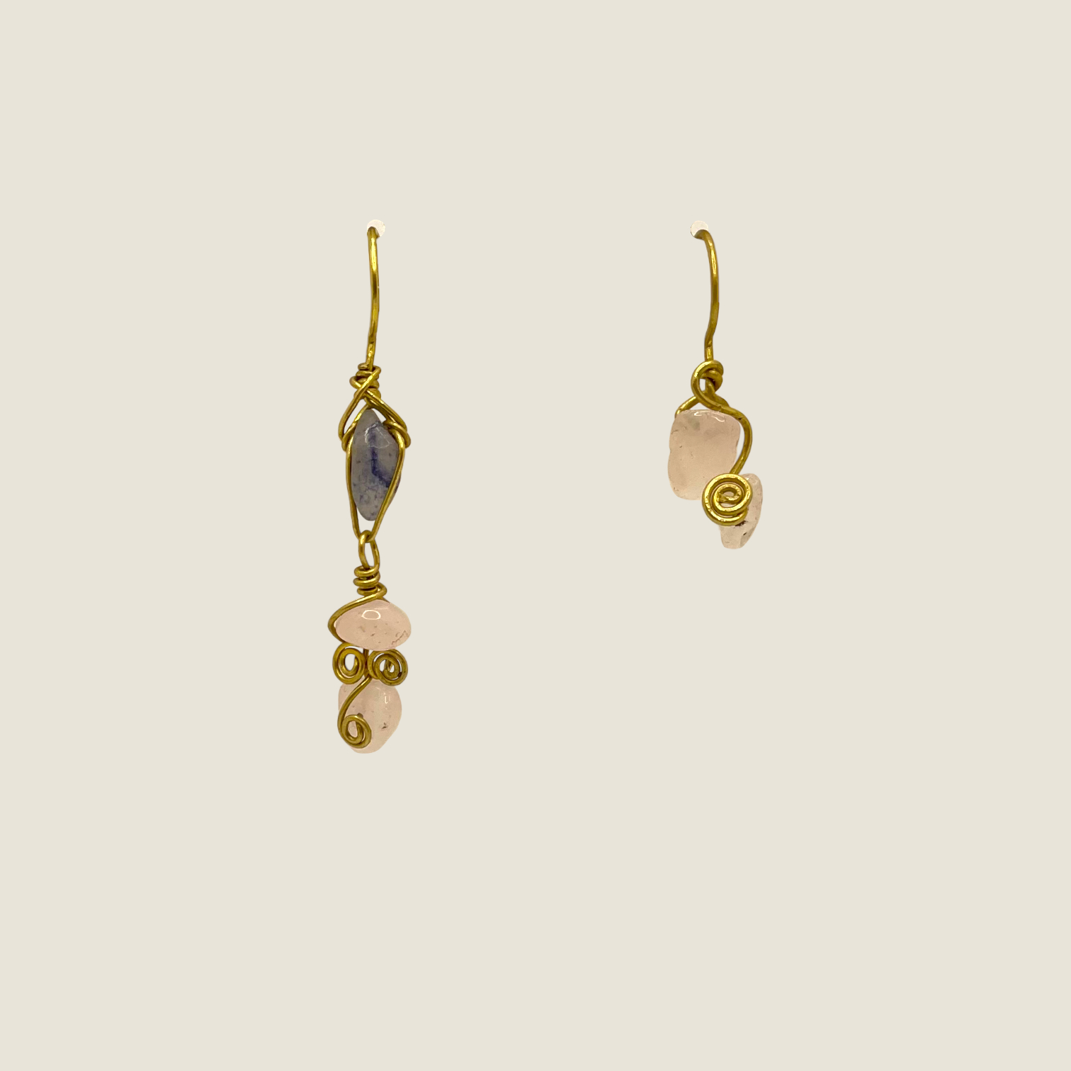 Coppia di orecchini in Quarzo rosa e Dumortierite