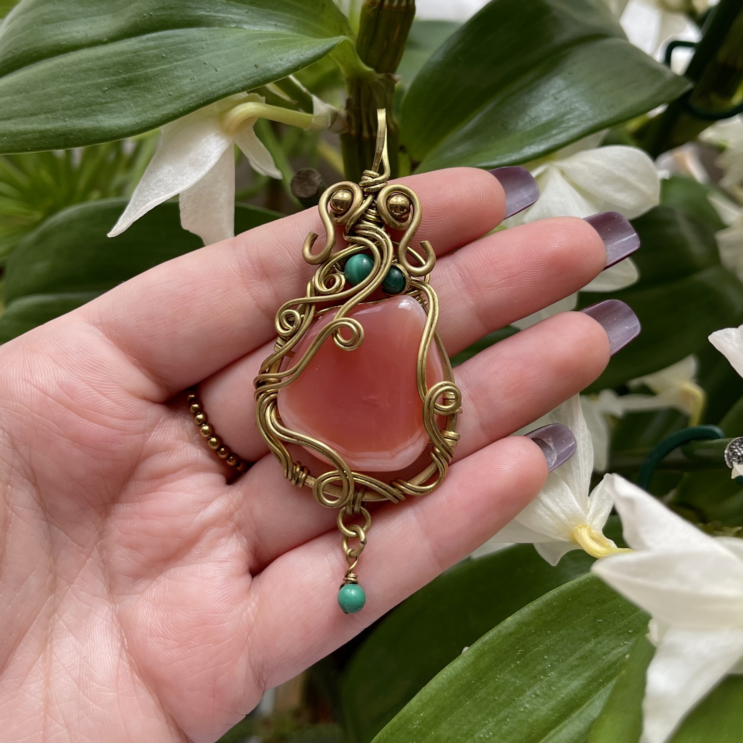 ESAURITO – Pendente in Agata Albicocca e Malachite