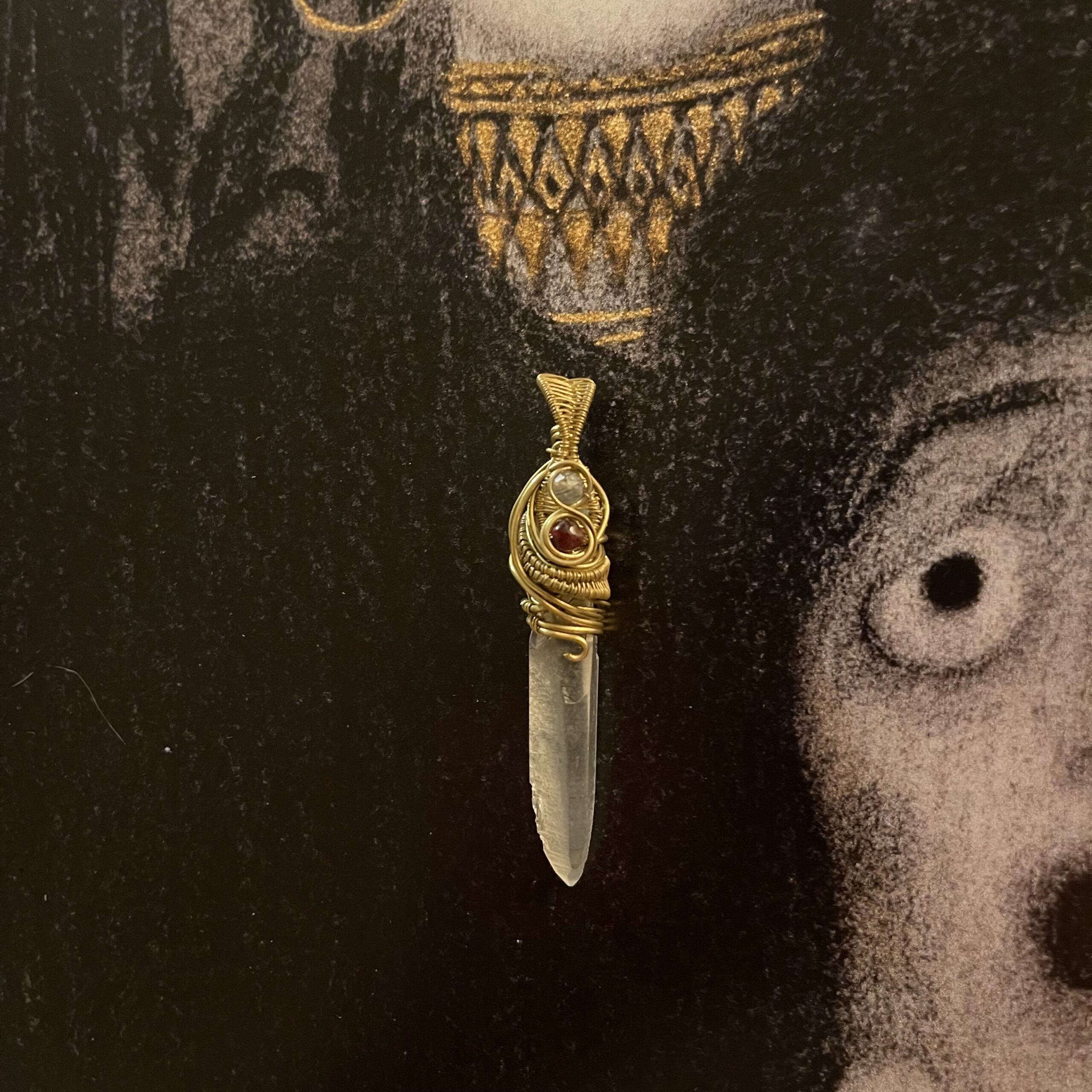 ESAURITO – Pendente in cristallo di Quarzo ialino con Granato e Quarzo tormalinato